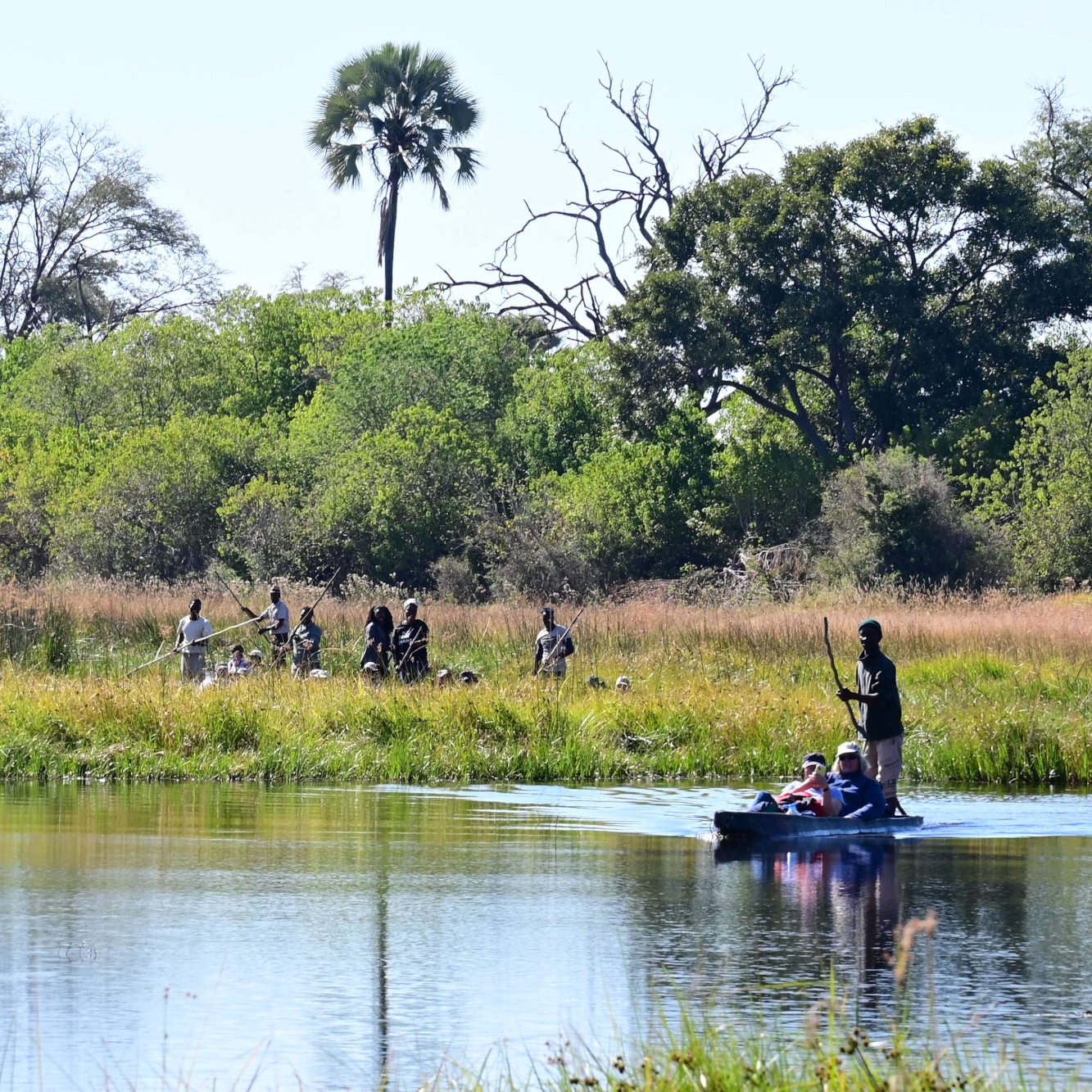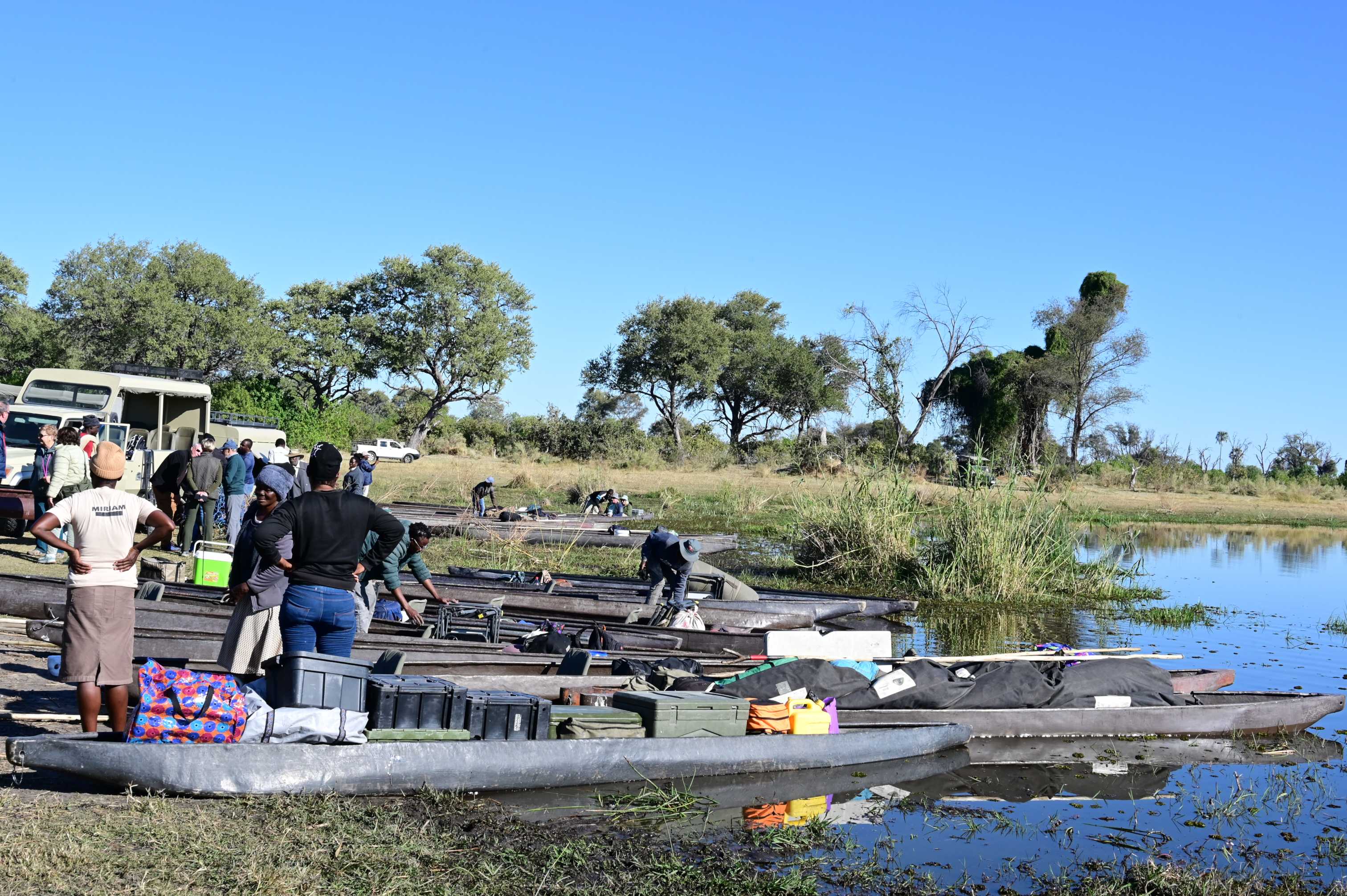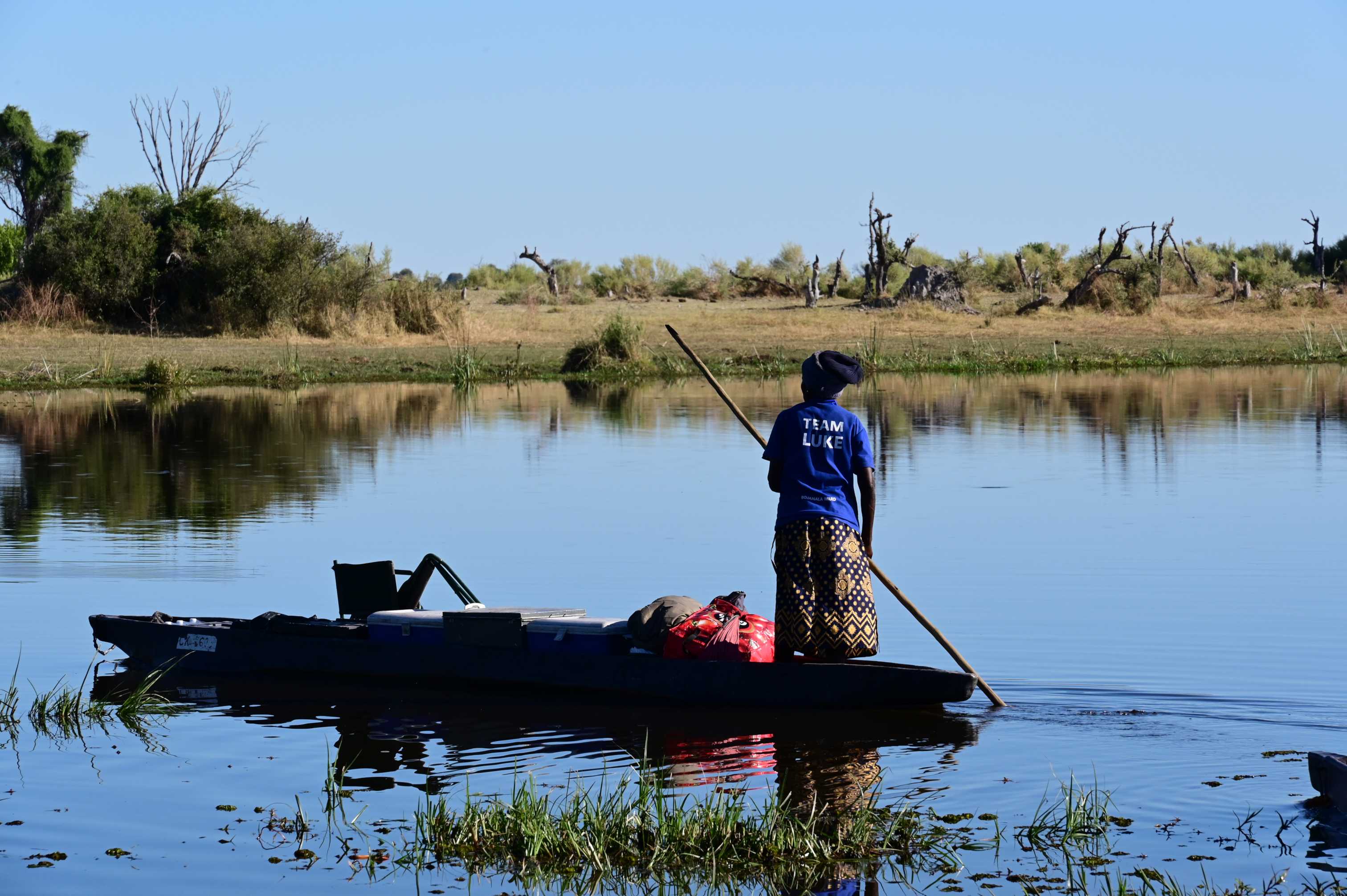 Mokoroer er egentlig kanoer laget ved at man huler ut en trestamme. I dag er de stort sett laget av glassfiber. Gruppen vår trengte 11 mokoroer, det var tre bare til utstyr (telt, feltsenger, stoler, kjøkkenutstyr, mat, osv) og så var vi 2 pers per mokoro i tillegg til poler fordelt på de 8 andre. Mokoroene blir ikke padlet eller rodd. I stedet står det en poler (kommer ikke på noe norsk ord) bak i mokoroen og skyver oss framover med en lang stake. Det er veldig grunt over alt der vi skulle fram, alt fra 30-40cm og opptil et par meter.