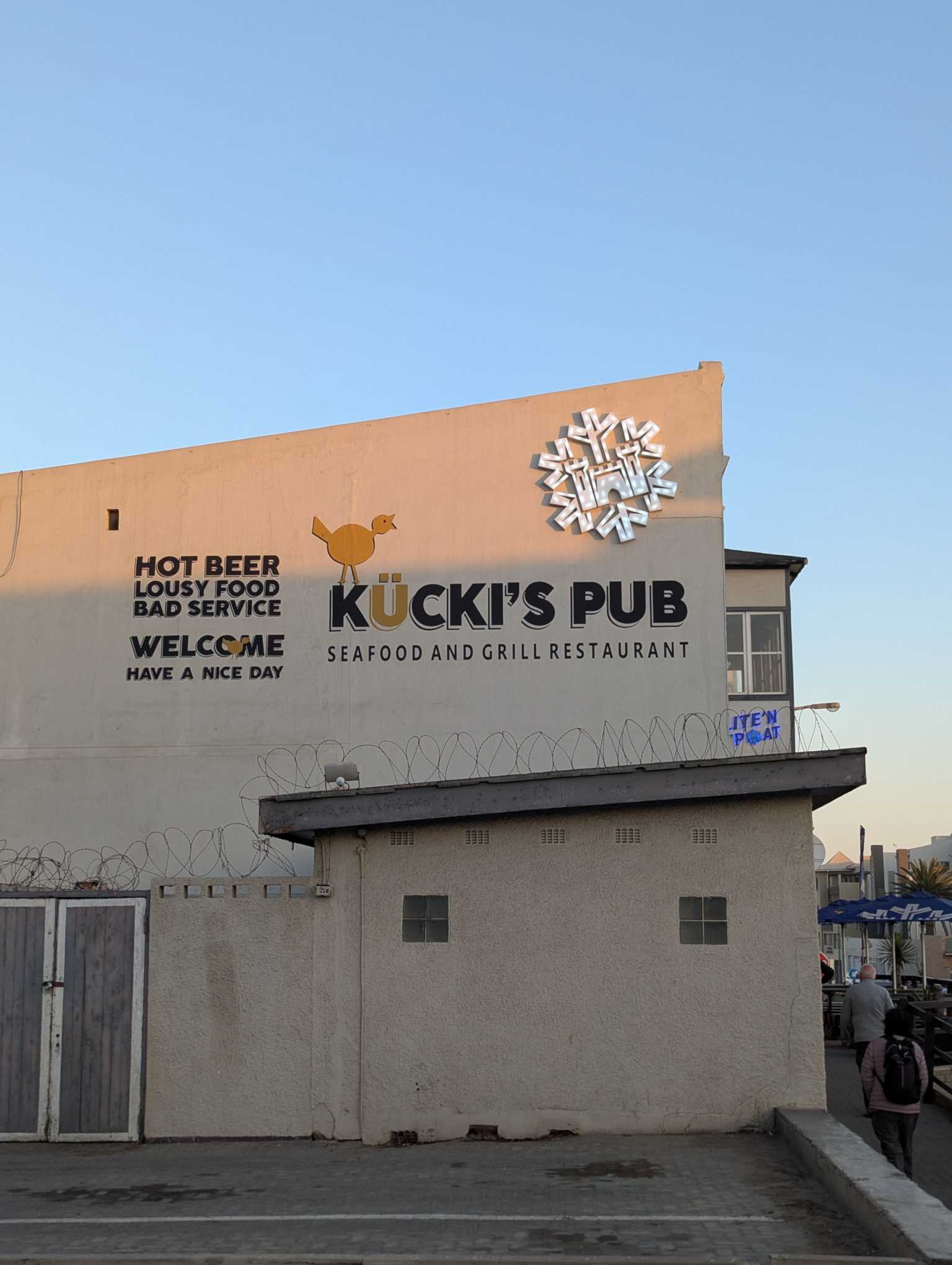 Felles middag på Kücki’s pub om kvelden. De reklamerer med «Hot beer, lousy food, bad service», men det stemmer definitivt ikke! God mat, store porsjoner og strålende service.