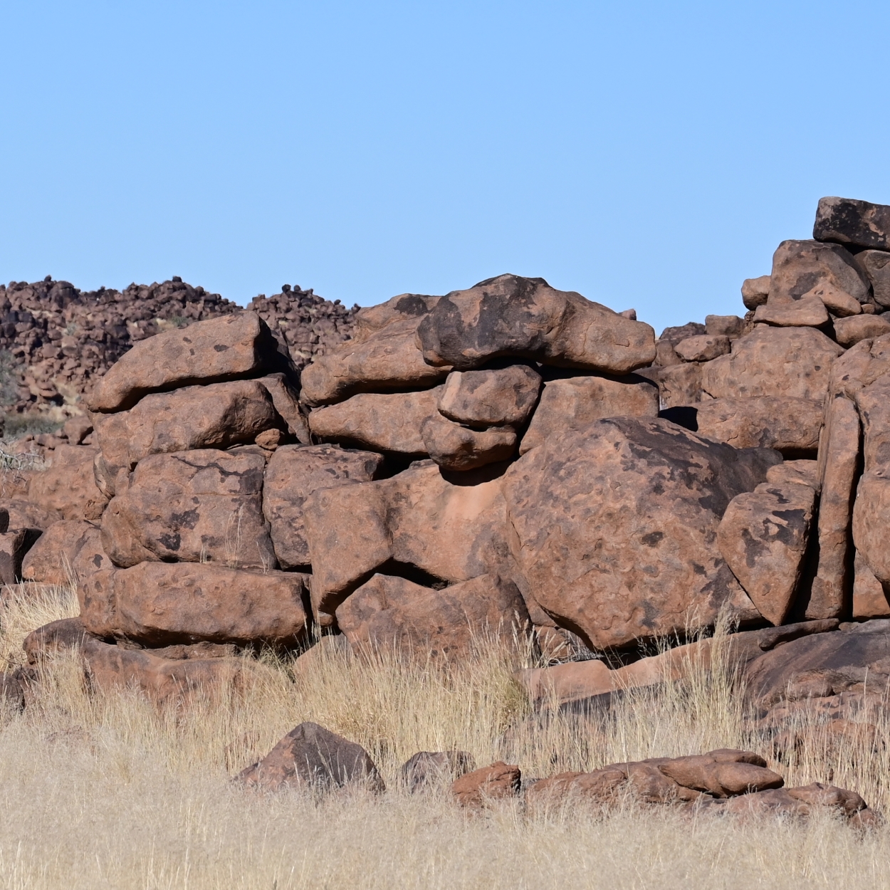 Fra Sossus gikk veien videre til Keetmanshoop. Det var en lang kjøretur (igjen). Når vi etterhvert nærmet oss dagens stoppested, ble det en avstikker til Giants playground, altså gigantenes lekegrind. Her finnes det spesielle steinformasjoner. Stammene i området mente steinformasjonene skyldtes giganter som hadde lekt seg og stablet steiner oppå hverandre. Den mer vitenskapelige forklaringen er noe om harde steinarter som kom opp sammen med mykere stein, der de myke er slitt bort av tidens tann mens de harde fortsatt ligger igjen i terrenget. Uansett hva som er riktig forklaring så er det nå i hvert fall fascinerende å se på. Det ser ut som at noen har forsøkt å mure en mur.