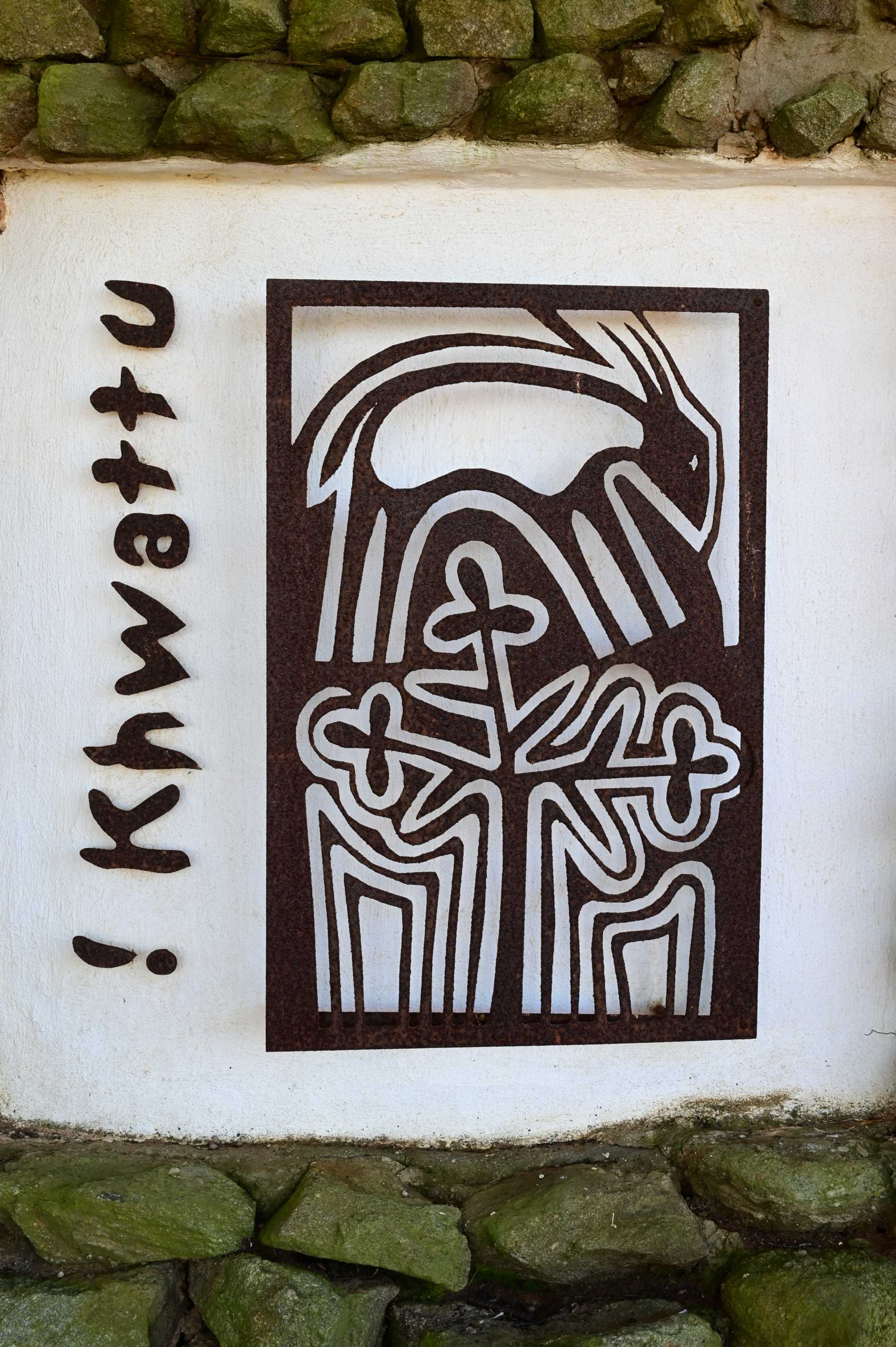 !Khwaa ttu uttales med en klikkelyd der det står utropstegn. San har flere klikkelyder, det er klikking på siden, klikking foran i munnen, og kysselyder. !Khwa ttu er museet for san-folket. Vi hadde omvisning med en guide som snakket san, og som del av omvisningen snakket han engelsk, afrikaans og san. Vi prøvde å gjenta en av setningene hans på san, men det var klin umulig å uttale klikkelyder når de skulle settes sammen med vanlige bokstaver.